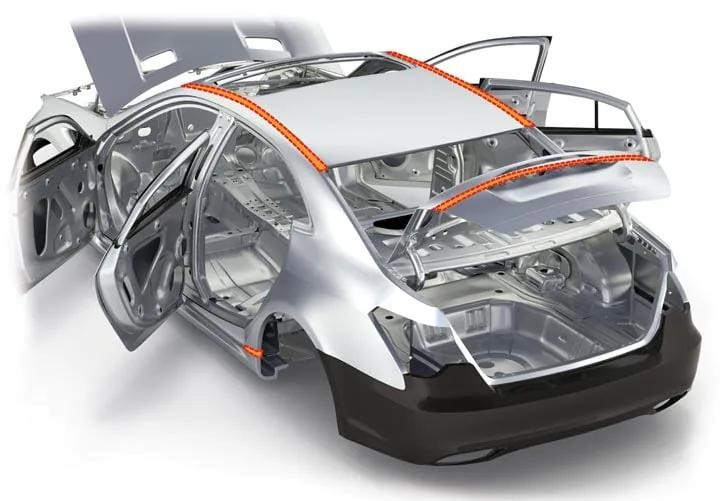 此外,近年来名为“激光钎焊”的钎焊技术也开始进入人们的视野。“激光钎焊”是指一边在母材之间填放钢丝状钎焊材,一边用光能(激光)熔化钎焊材,以进行接合的工艺。母材基本上不会熔化,因此可将热变形控制在理想范围。这样不会影响到产品的外观,可实现轻量且高刚性的接合。以前,在汽车的车顶、侧面板、后行李箱盖等的接合工序中,一般采用电阻点焊接。例如,在车顶和车身的接合中,设置凹槽状车顶连接部分,进行电阻点焊接,接合后,为了隐藏连接部分的凹槽和焊接的痕迹,需要用饰条遮盖。但是,在“激光钎焊”中,能够维持母材的美观,因此可以省略连接部分、饰条等的加工以及部件和工序。此外,接头强度和接合速度会变为电阻点焊接的2倍左右,正在以汽车行业为主,不论是欧洲还是日本国内,应用越来越广泛。