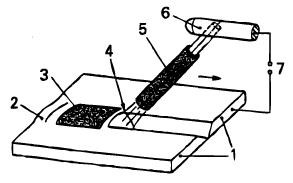 在德国人们将最后提到的这种方法称为电弧手工焊接或简称为手弧焊(口语中也会被成为电极焊接)。在说英语的地区,对这种方法的缩写是 MMA 或 MMAW (Manual Metal Arc Welding)。这种方法的特点是,电弧在一个熔化的电极和熔池之间燃烧,没有外加的保护,所有的防止大气的保护作用均来自于电极本身。电极既是电弧的载体,又是填充材料。外层的药皮会生成熔渣和/或保护气体,它们保护过渡的熔滴和熔池不受大气中的氧气,氮气和氢气的侵入。