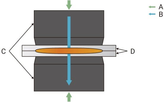 分为“摩擦压接法”、“气体压接法”和“电阻点焊接”。“摩擦压接法”利用的是物质的塑性,即向物质施加一定的力并使其发生变形后,即使不再用力,也会保持变形的性质;“气体压接法”是通过将母材相互压紧,再用气体加热以实现接合;“电阻点焊接”则是将待接合的2块母材相互重叠并通电,将电阻发热作为热源以进行接合。此外,“摩擦压接法”、“电阻点焊接”等压接方法可实现自动化和无人化,因此自动压接机被广泛应用于FA(工厂自动化)车间。