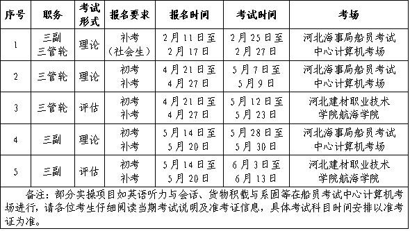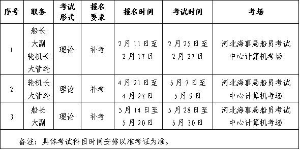 河北海事局河北辖区2025年上半年海船船员适任考试计划