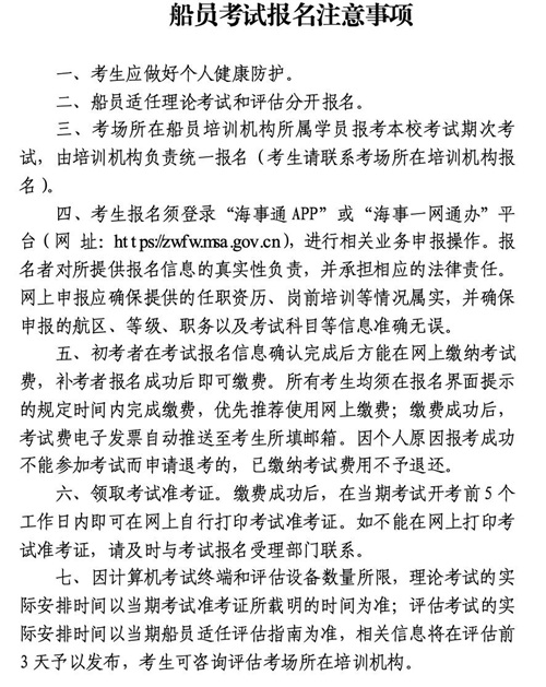 报名方式:登录“海事通APP”或“海事一网通办”平台(网址:https://zwfw.msa.gov.cn)报名。