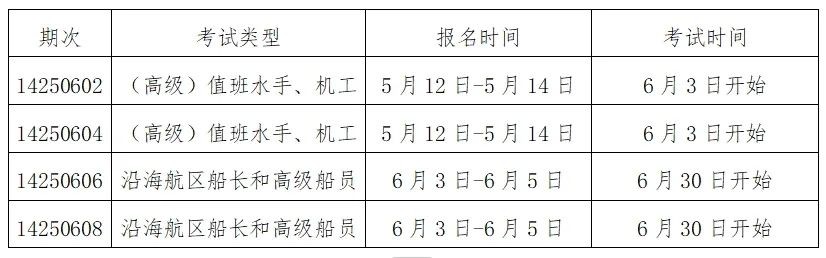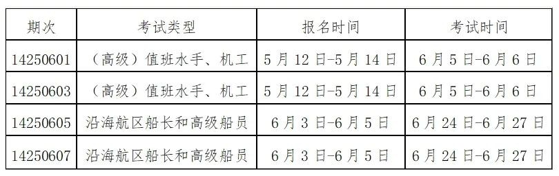 2025年上半年管理级船员理论考试共3期,具体时间安排如下。