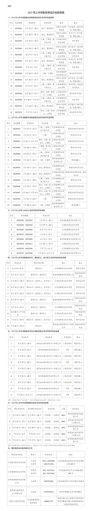 (二)海船船员内河水域航线签注考试和评估计划安排详见“2025年上半年海船船员内河水域航线签注考试评估时间安排表”(附件第五项)。