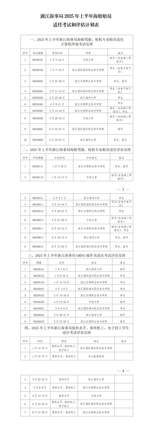 浙江海事局2025年上半年海船船员适任考试和评估计划