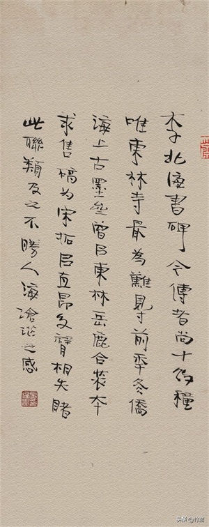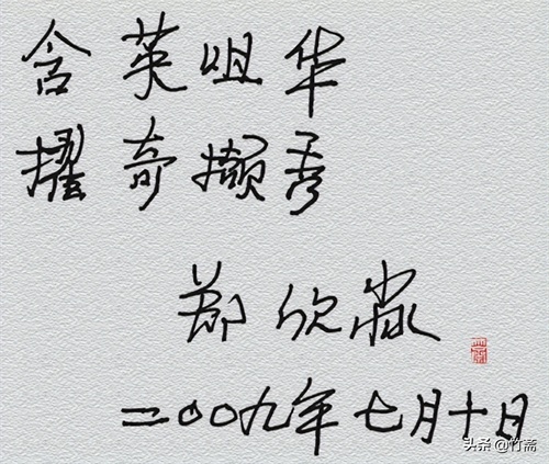 精通篆、隶、真、行、草,不仅在书法上成就斐然,而且在金石学、治印方面也成就突出。其行书,不仅有“二王”的洒脱和妍美,而且还有智永的神韵,行云流水,飘逸大气,在飘逸洒脱中还略带一丝规整。