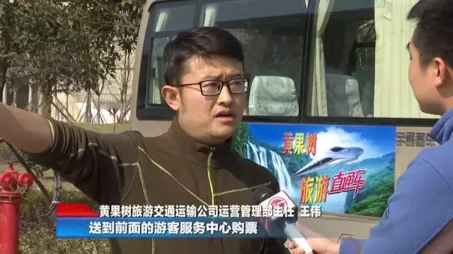 黄果树旅游交通运输公司运营管理部主任 王伟:由我们黄果树旅游运输公司,设置了六辆车,我们准时把游客送到前面的游客服务中心购票,然后就直接送到我们景区,每一班车,我们都是根据高铁的时间,做一个灵活的调整。