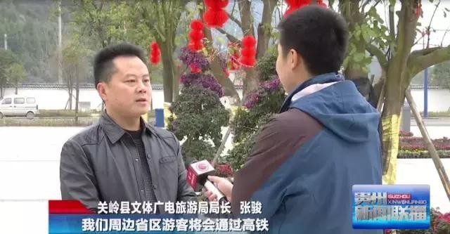关岭县文体广电旅游局局长 张骏:高铁开通以后,我们周边省区游客将会通过高铁到关岭、黄果树到我们安顺来旅游,据我们初步统计,游客数量将会增加到3到5成,游客人数2017年会突破600万人。