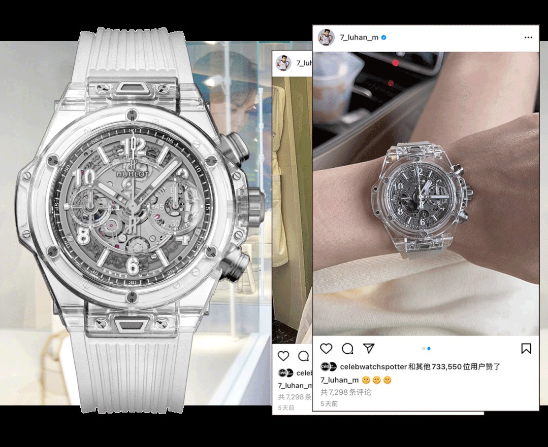 鹿晗这个资深表迷,不仅与很多钟表品牌有过合作,日常晒表也是他的爱好之一。前不久,鹿晗在Ins上发了他的理发照,顺便还秀了一下手腕上的HUBLOT宇舶表Big Bang系列Unico蓝宝石腕表,潮流风尚与高端制表技术全部拿捏得稳稳滴。