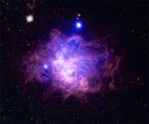 这张图片结合了钱德拉 X 射线天文台的 X 射线成像和哈勃太空望远镜的光学数据。