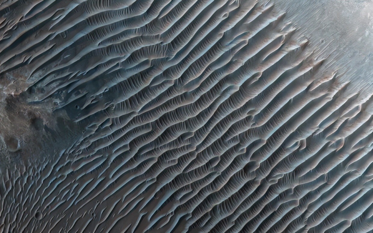 美国宇航局的火星勘测轨道飞行器捕捉到了这张行星表面涟漪的图像。