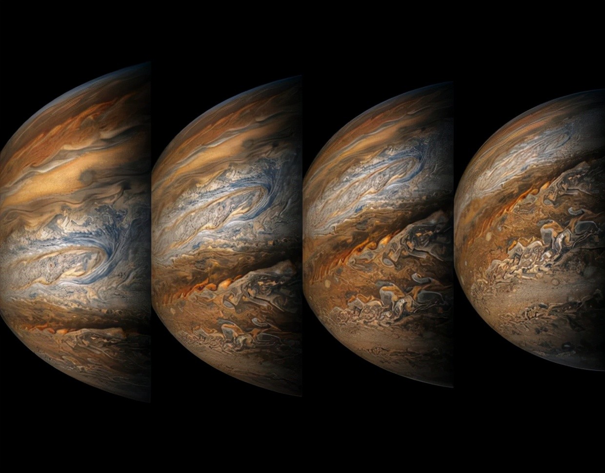 这是朱诺号第八次飞越木星的一系列图像。