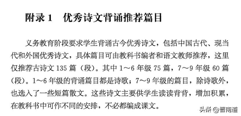 这75首的名录,是在教育部2022年发布的《义务教育语文课程标准》里明确提及的(附件1)。