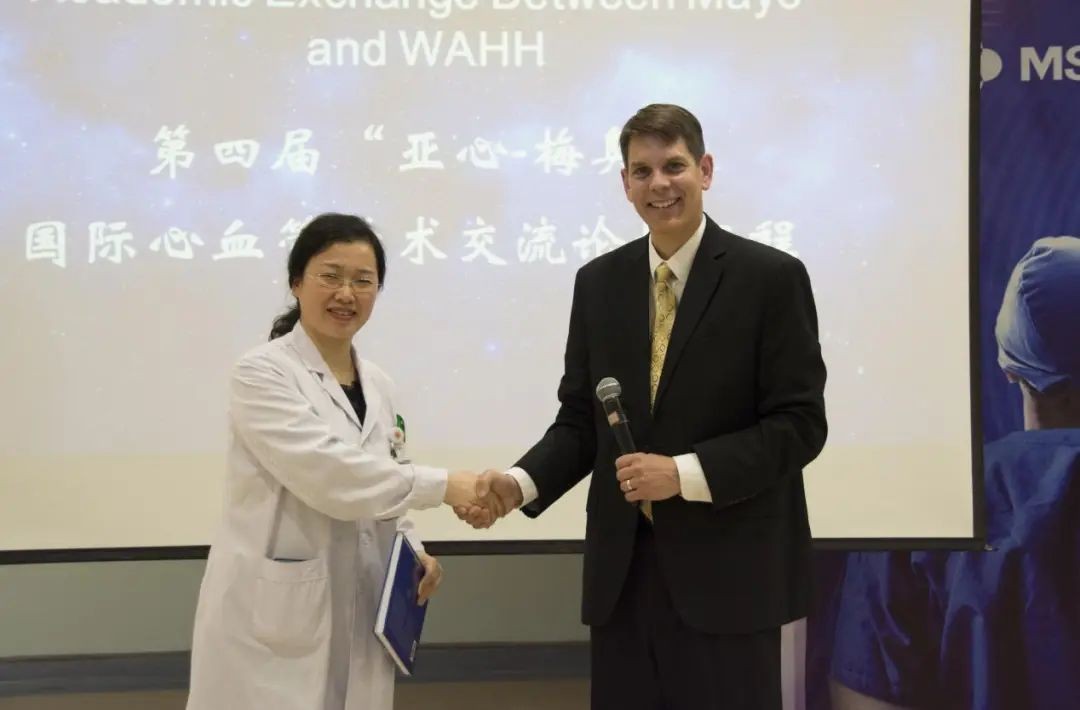 鄢华院长(左)在“亚心-梅奥”国际心血管学术论坛上