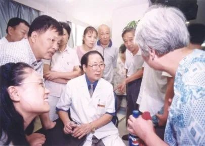 建院初期,朱晓东院士(穿白大褂者)悉心为患者答疑