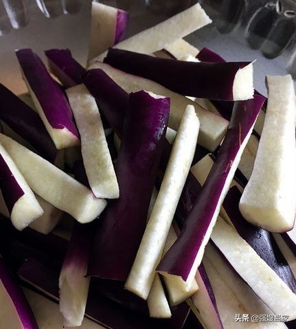 3,把茄子切好后,就不用放进清水浸泡了,用来晒干的茄子,不用担心茄子会被氧化变黑,不影响口感和食欲,反正晒干的茄子都是黑的。反而把茄子泡水,那还更难晒干水分。
