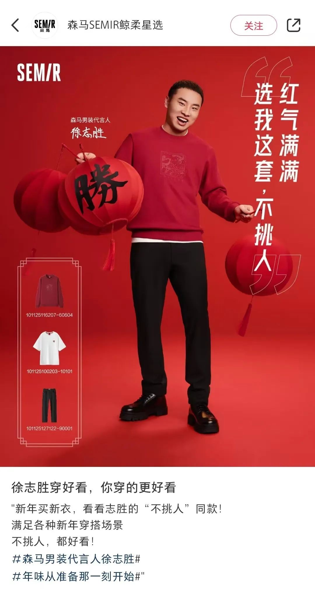 森马不仅把徐志胜升级为了「男装代言人」,