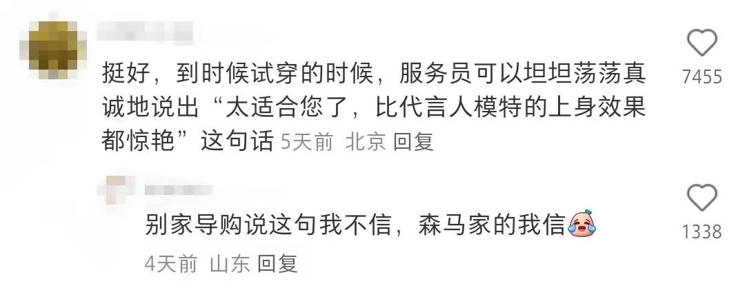 “太合适您了,比代言人的上身效果都惊艳”。