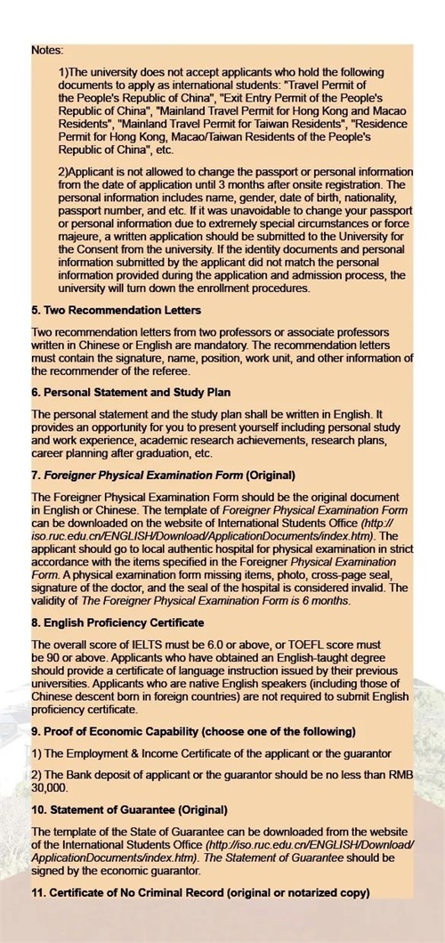 1)The university does not accept applicants who hold the following documents to apply as international students: "Travel Permit of the People's Republic of China", "Exit Entry Permit of the People's Republic of China", "Mainland Travel Permit for Hong Kong and Macao Residents", "Mainland Travel Permit for Taiwan Residents", "Residence Permit for Hong Kong, Macao/Taiwan Residents of the People's Republic of China", etc.