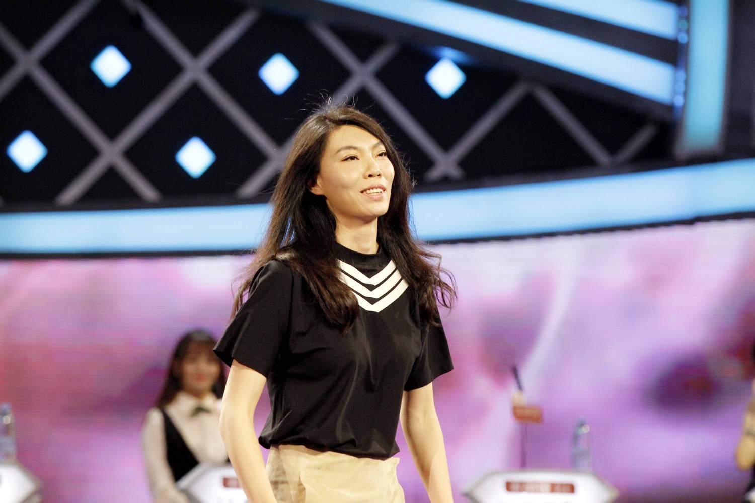 (张萍在电视台录制《缘来非诚勿扰》)