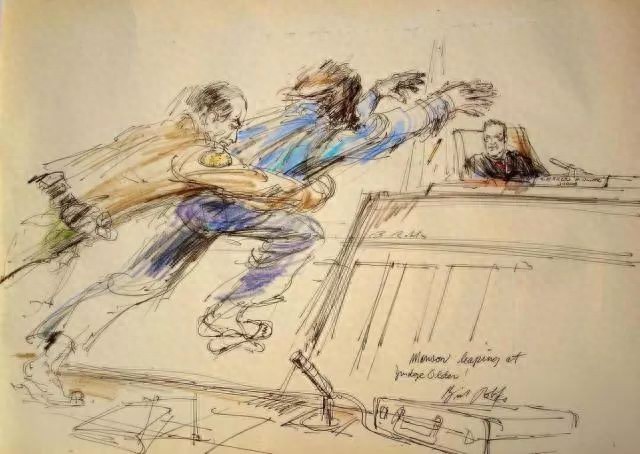 首先是曼森。由于他在之前的长篇大论中,曾经多次提到过“检方的证人不可信”,因此法官特意批准了曼森所提出的“要跟证人当面对质”的要求。然而,当再次开庭,法官要求曼森开始和证人琳达对质的时候,曼森突然跳了起来,扑向法官。