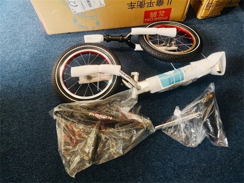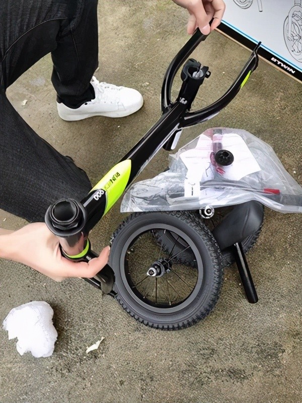 需要安装的东西还挺多的,前轮、车把、车座▼