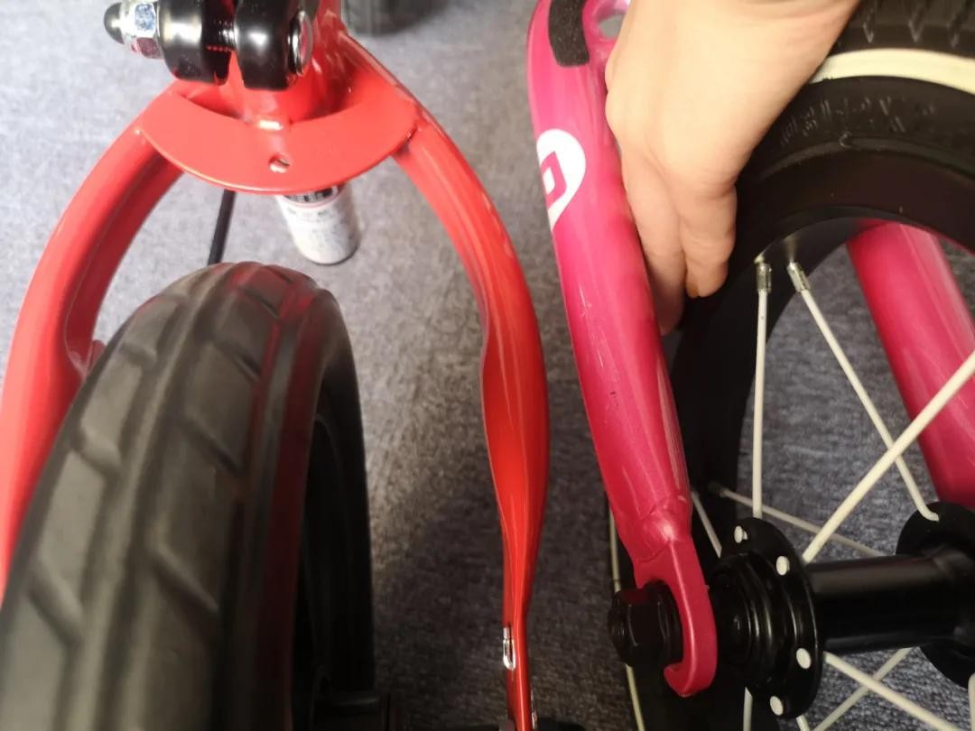 凤凰、永久、飞鸽3部车的车轮与后叉间隙比较窄,孩子不小心伸进去的话也容易发生挤压的风险▼
