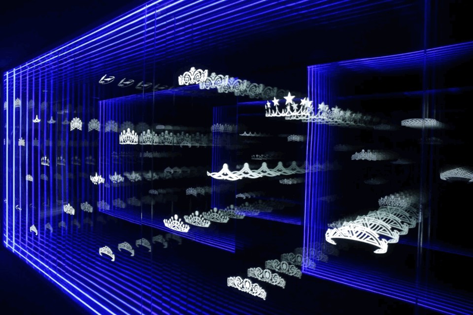 展览入口处这条数字化形式打造的冠冕无尽走廊,就是CHAUMET冠冕传奇的缩影。在过去的两个半世纪里,CHAUMET始终创作出领先时代的作品,如今坐拥超过3500多款的独到款式,就像这条冠冕走廊一样令人震撼。