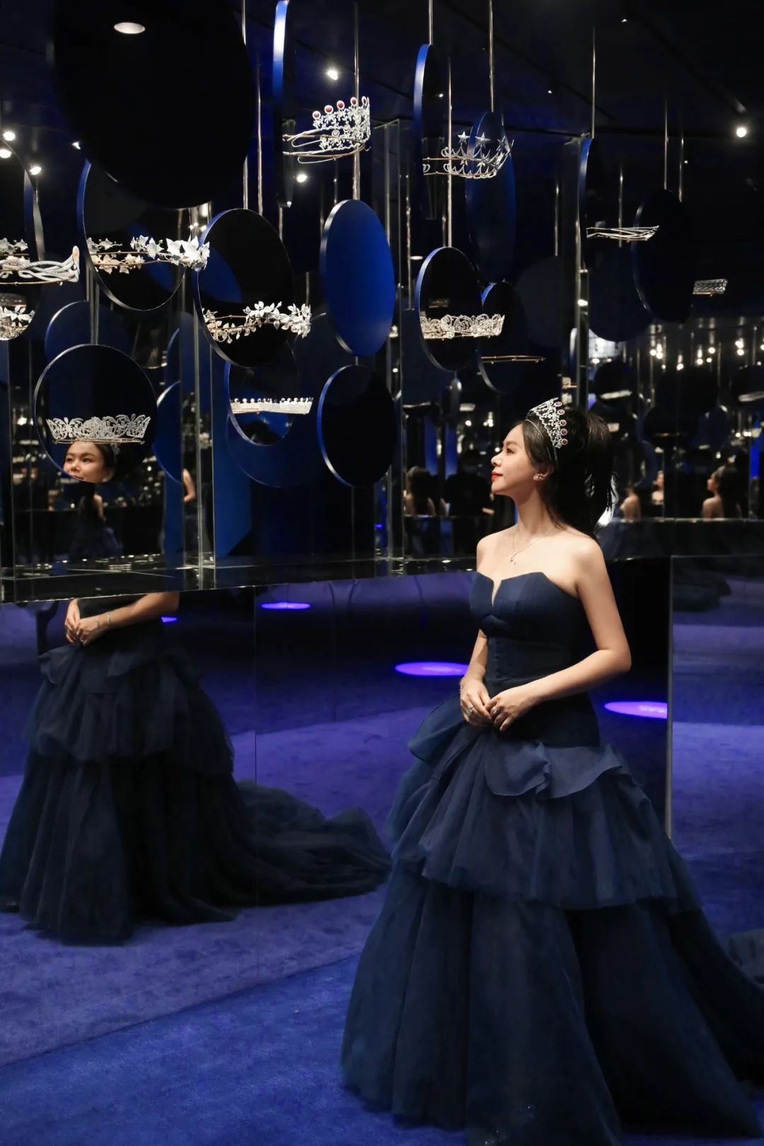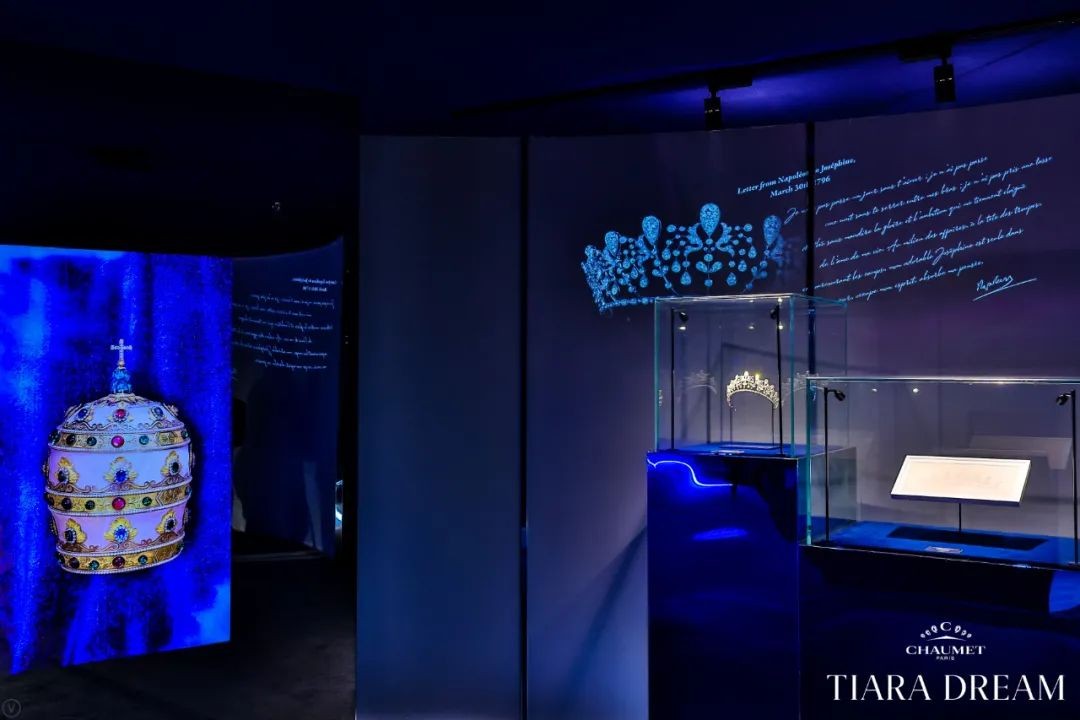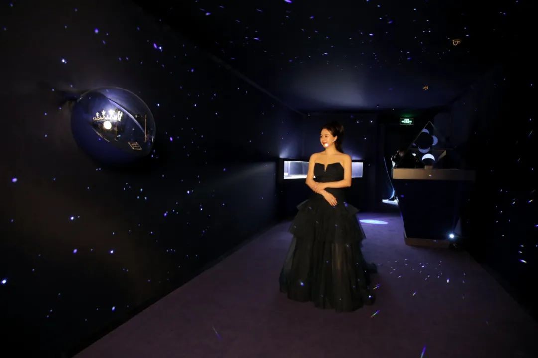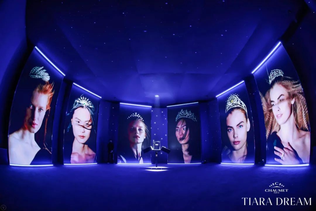 在“通往永恒”房间里,就可以看到CHAUMET以天空作为灵感而设计的冠冕。整个展厅被布置成星空幻境,沉浸式的体验,让人仿佛漫步于浩瀚的宇宙~