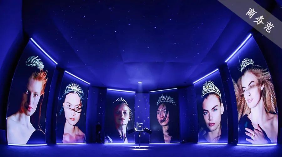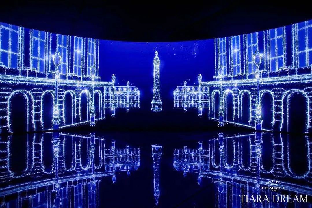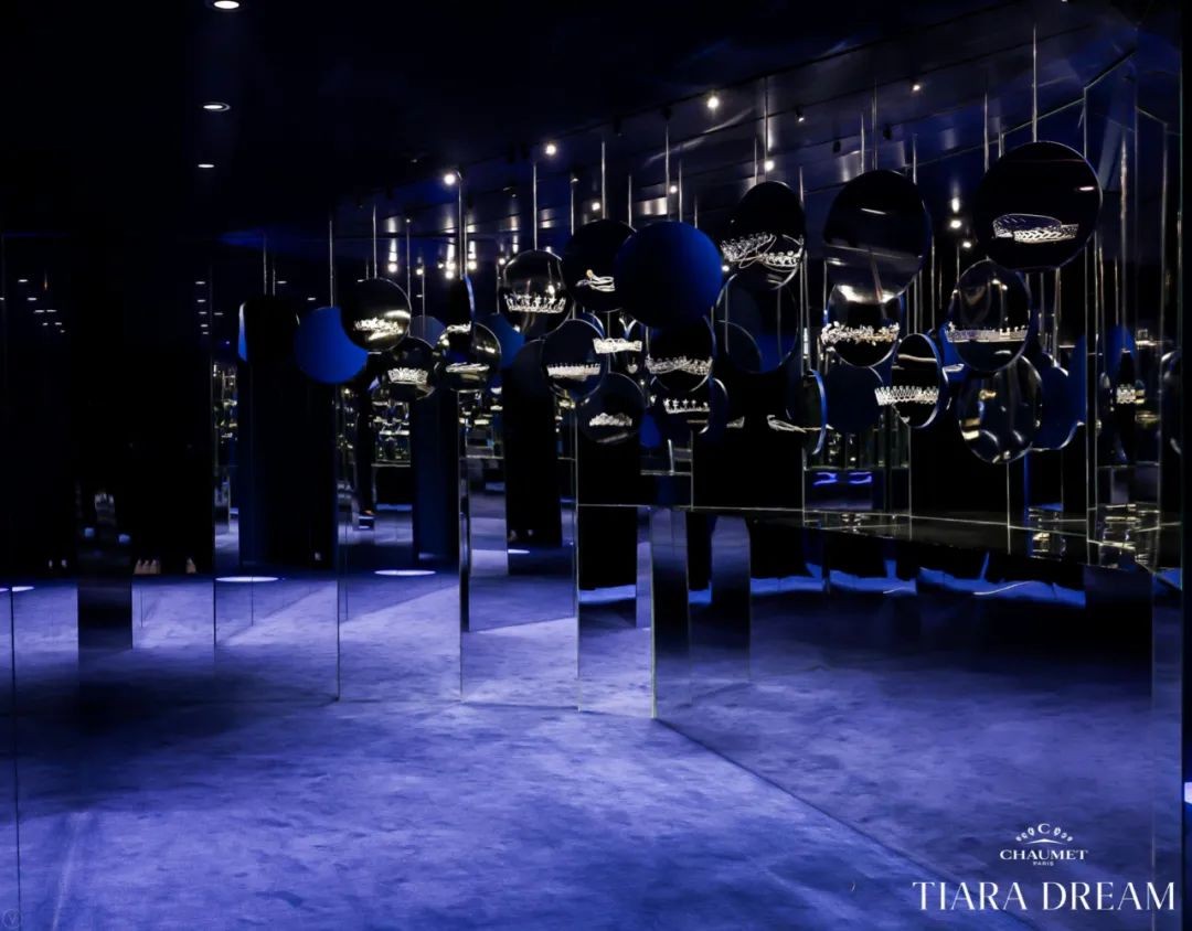 整个空间都是CHAUMET皇家蓝,在灯光的渲染下,深邃奇幻又壮观。这里也是必须拍照打卡的地方,能拍出一种时空隧道的感觉,非常酷炫~