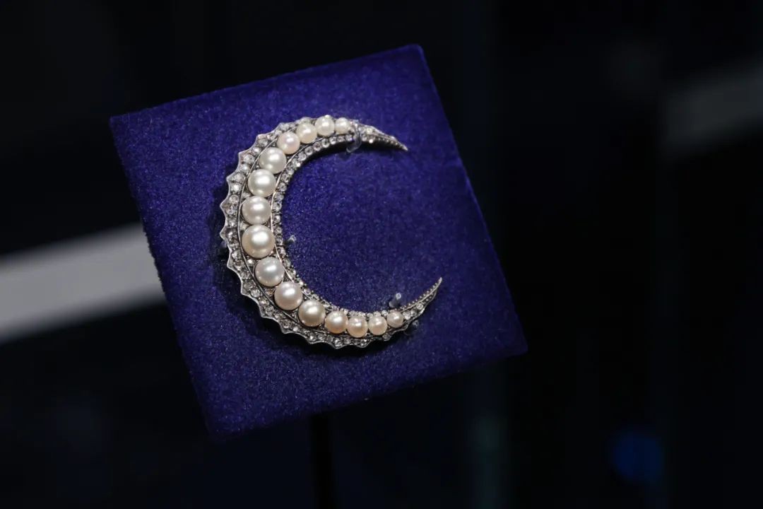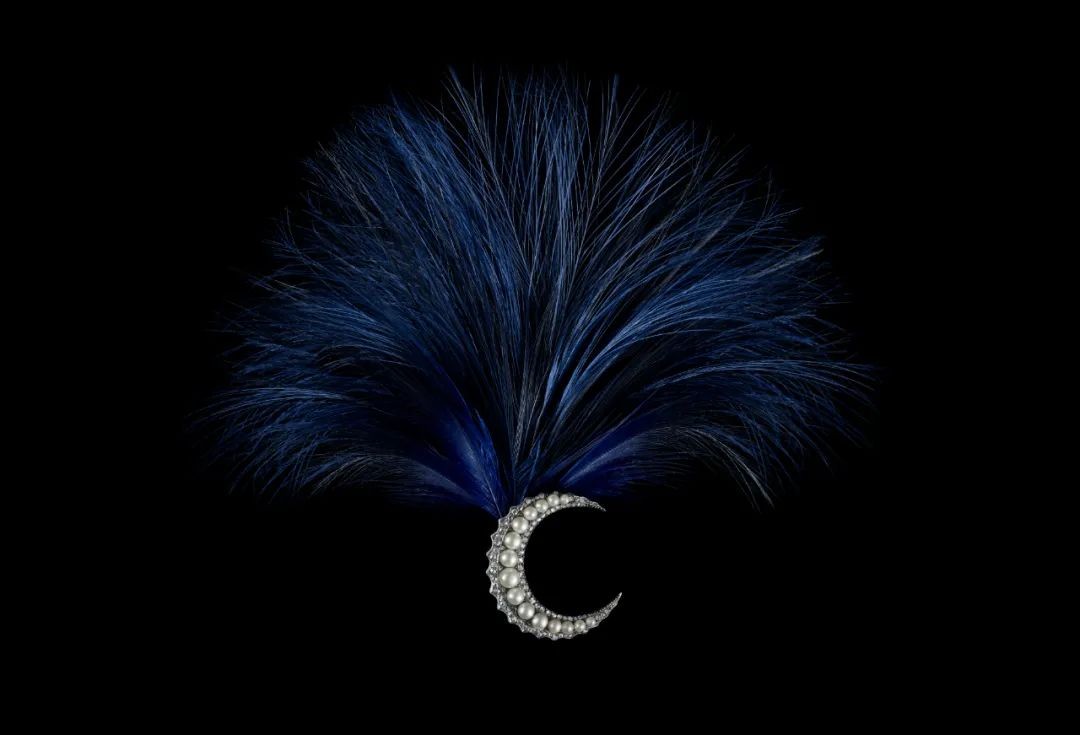 像是这枚古董新月胸针,实际就是一款可以搭配各种羽毛的“白鹭冠”,比早年传统的冠冕更加灵巧轻便。