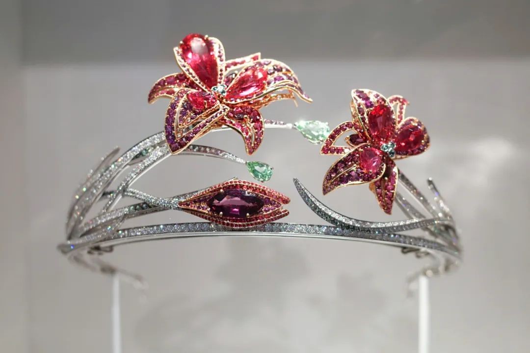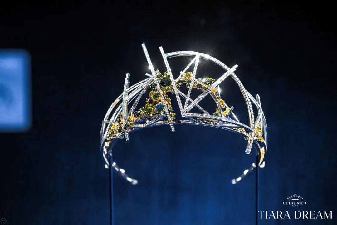 这顶眩彩花园冠冕,由毕业于伦敦中央圣马丁学院的设计师Scott设计,获得了CHAUMET举办的“21世纪冠冕”大赛冠军,CHAUMET高级珠宝工坊为这一设计制作了冠冕成品