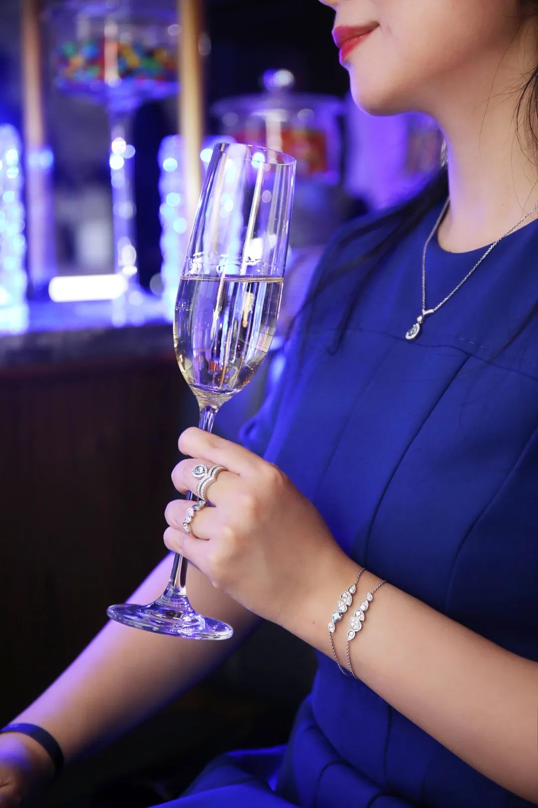派对结束后,还可以在旁边的Bar里小酌一杯。范主专门穿了一条CHAUMET皇家蓝的连衣裙,和活动主题与环境都很搭。