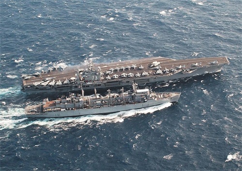 美国海军“供应”级快速战斗支援舰正在为航母进行补给