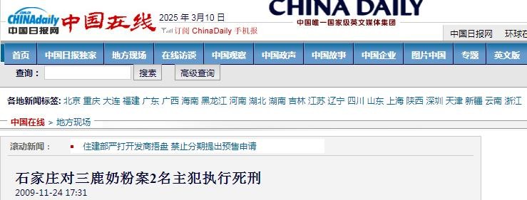 中国日报网 石家庄对三鹿奶粉案2名主犯执行死刑 2009-11-24