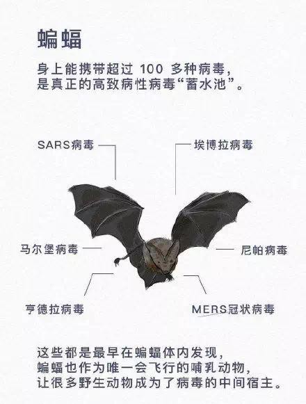 地球上最恐怖的病毒罐子就此诞生了,多少病毒在蝙蝠身上平静的共生着,谁也不知道,反正人家蝙蝠不生病,我们这些碳基猴子们,只能跪拜人家蝙蝠的外挂技能,顺便躲得远远的。