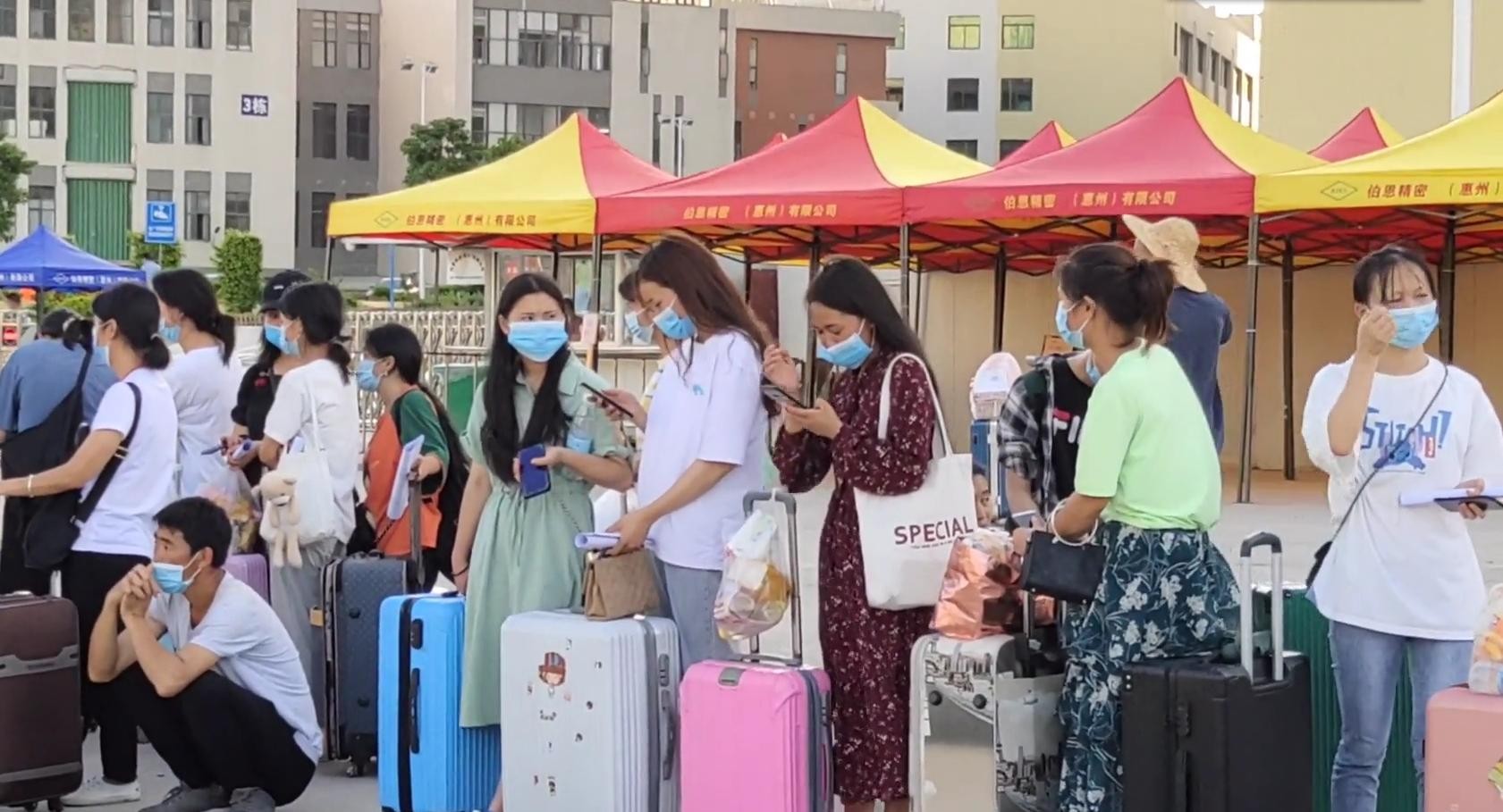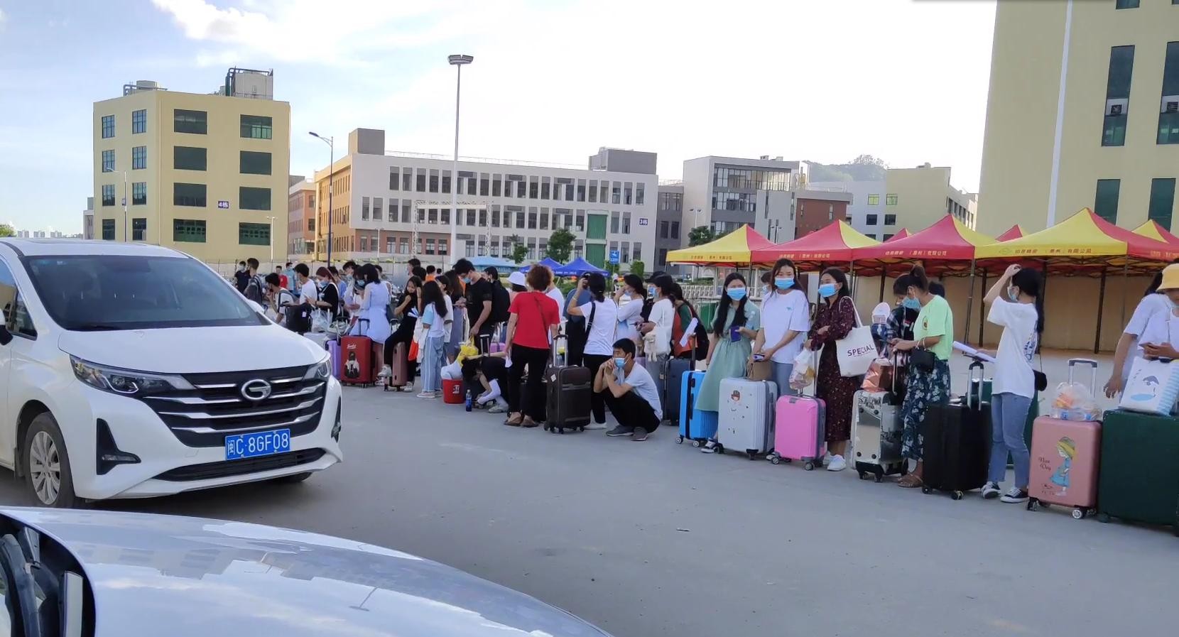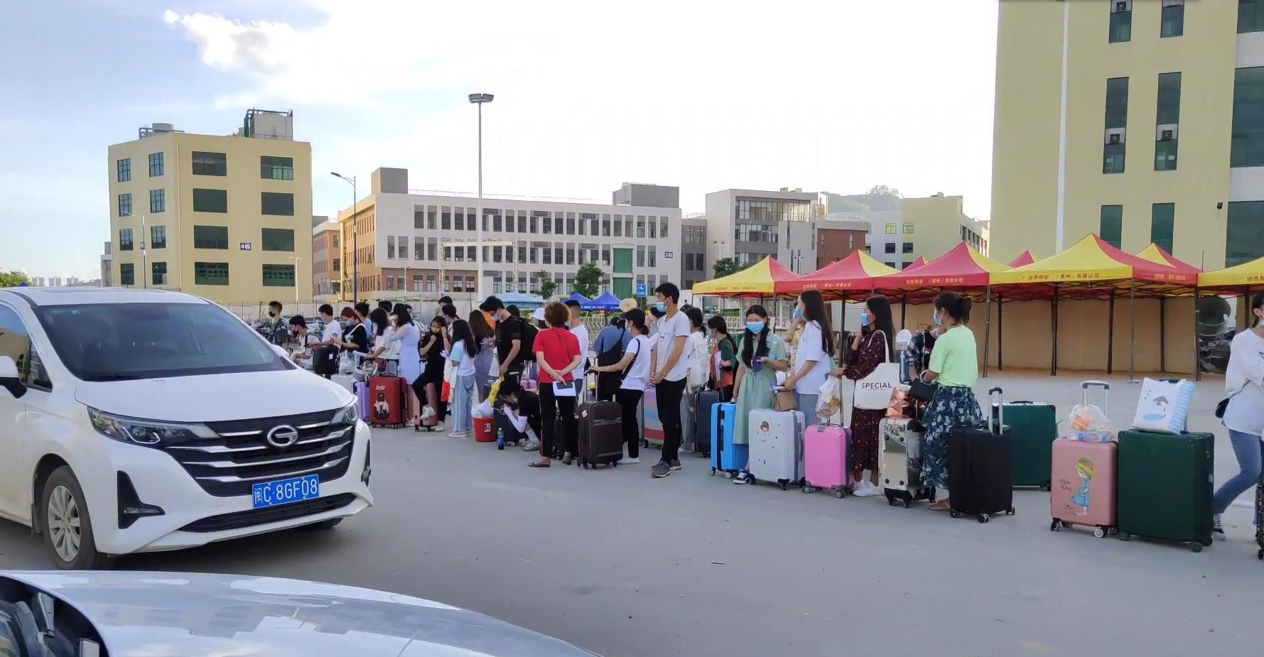 厂门口大部分都是从深圳,东莞两地来工作的年轻人,大部分都是中介统一招工,统一安排车辆送过来,等正式办完入职手续,上班稳定中介就可以抽取自己的佣金。