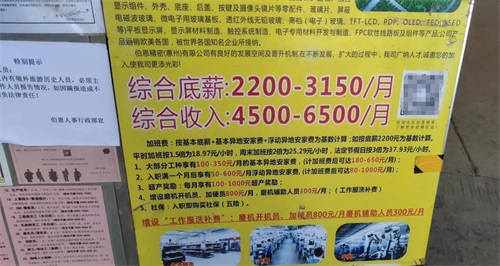 惠州伯恩光学:月薪4500-6500,临时工21个小时,吸引大批女孩子