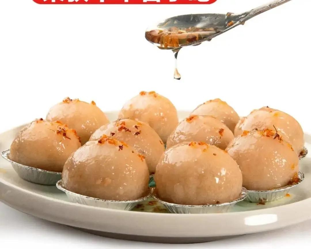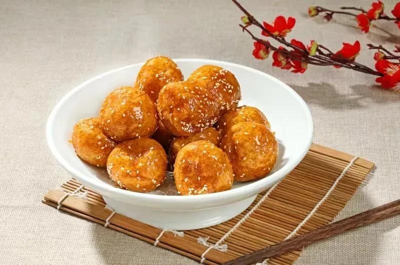 桂花藕粉圆子,芝麻湖藕,浠水县特产之一,以其优秀品质、独特口感、甘甜滋味出名。生吃芝麻湖藕,与普通品种的藕类差异明显,不涩口、无碎渣、更甘甜。熟食不变色、不浑汤。本道菜品选取本地特产九孔藕制成的藕粉,搓成团,分成大小相近的圆子,放入开水中煮至浮面;捞起,过冷水表面淋上一层桂花蜂蜜酱,使其看上去黄金酥脆,色泽诱人。