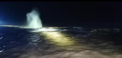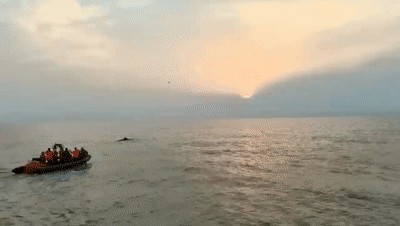 幸运的是,4月20日凌晨5时20分,经过通宵的守护,渔政救援船将抹香鲸拖拽到水深28米的区域时,它恢复了自主下潜的能力。渔政船切断牵引绳,救援人员朝它大喊“回家啦”时,东边正日出,朝阳映着海面,死里逃生的抹香鲸向着深海游去。