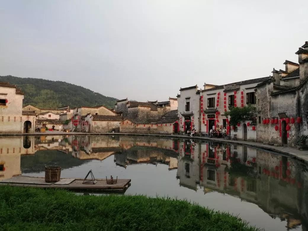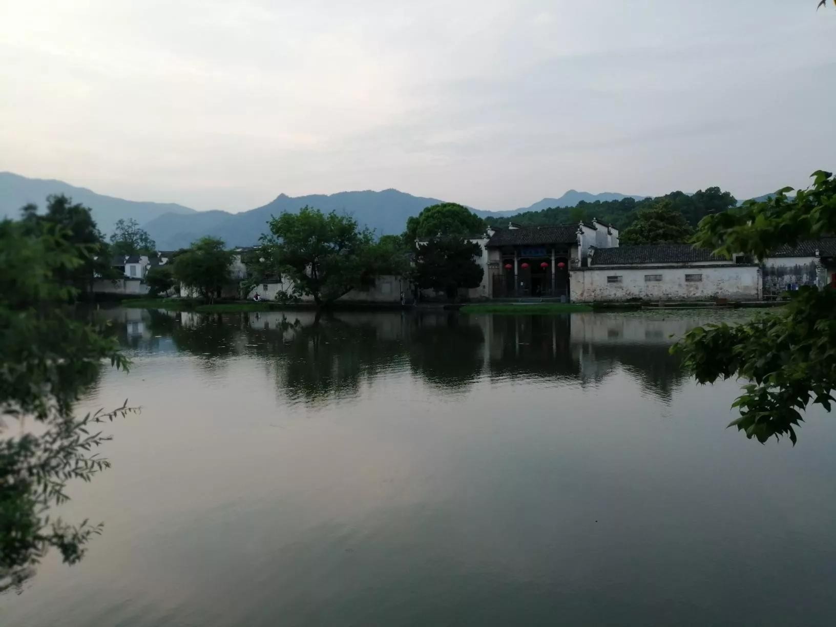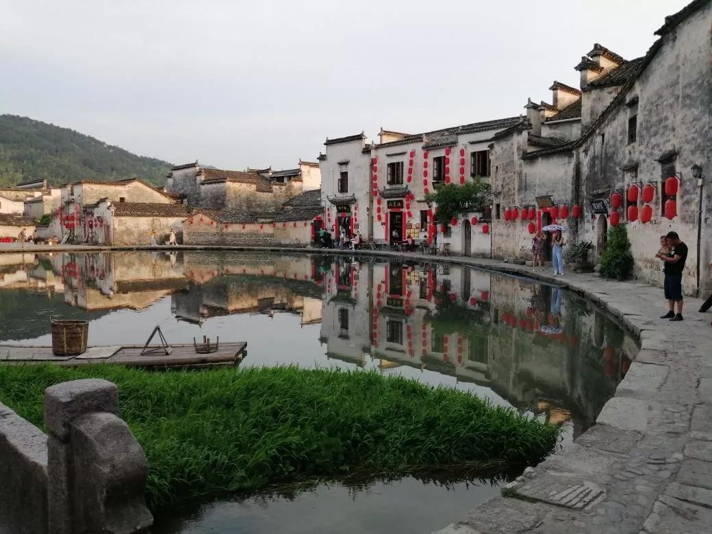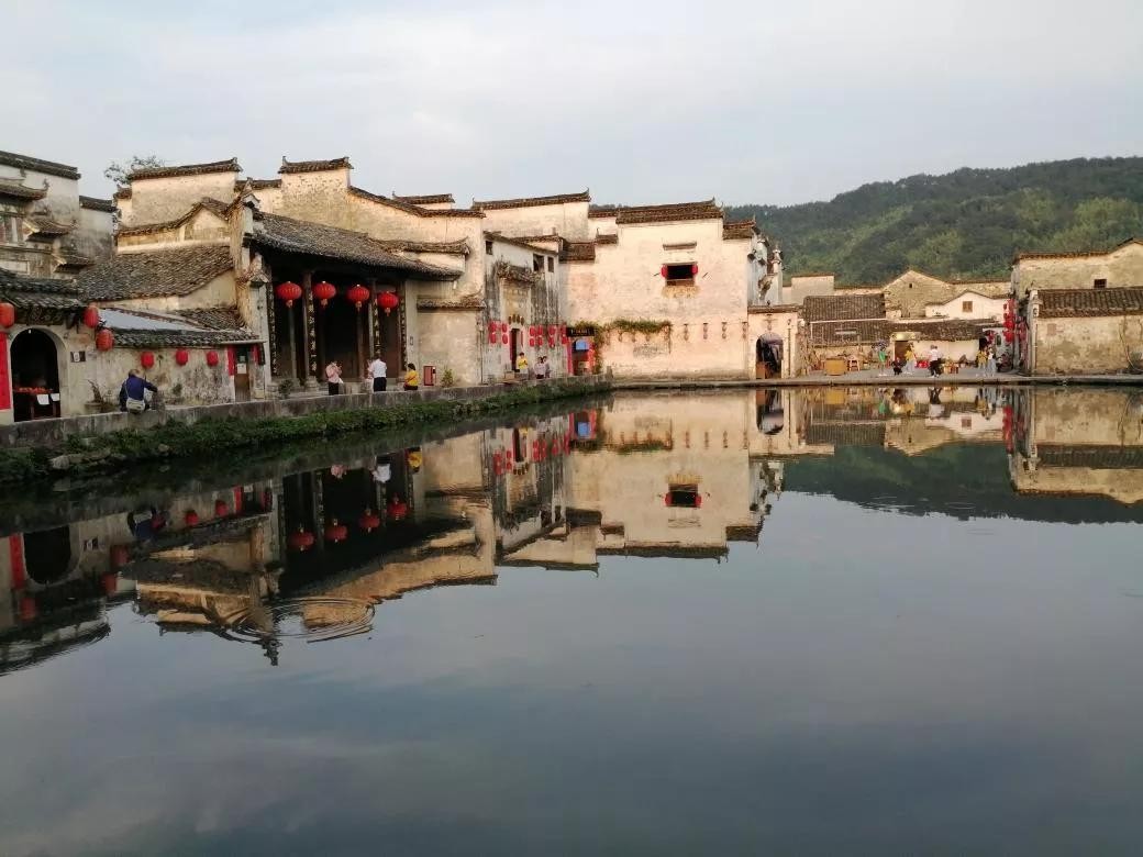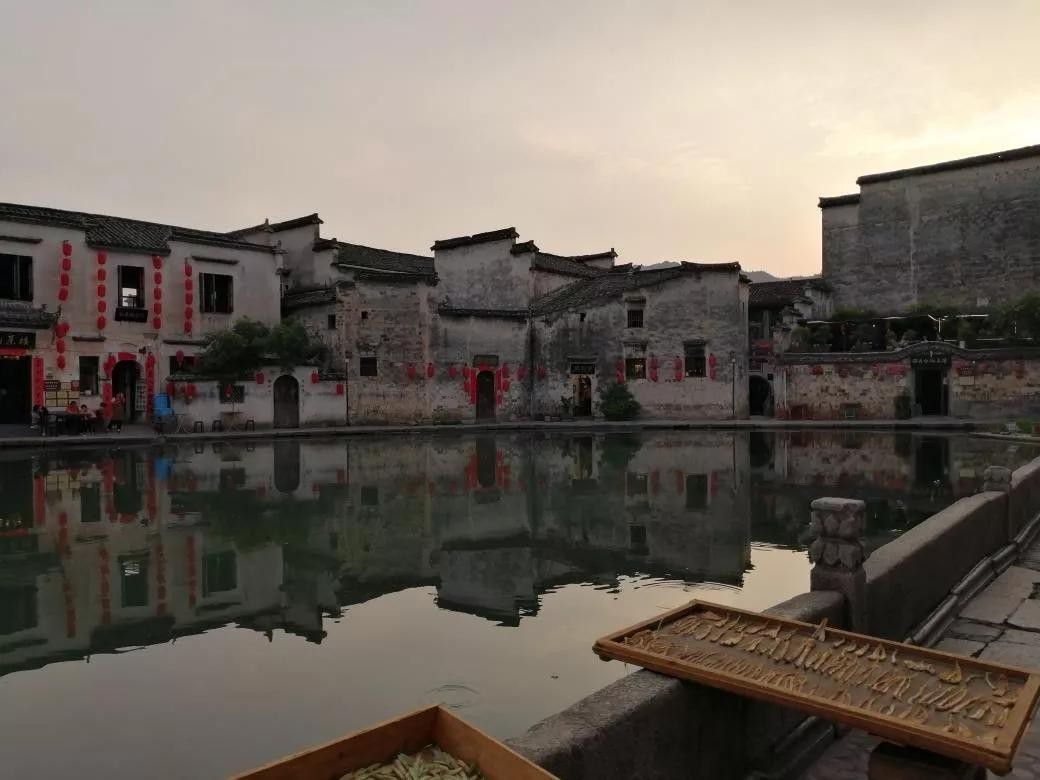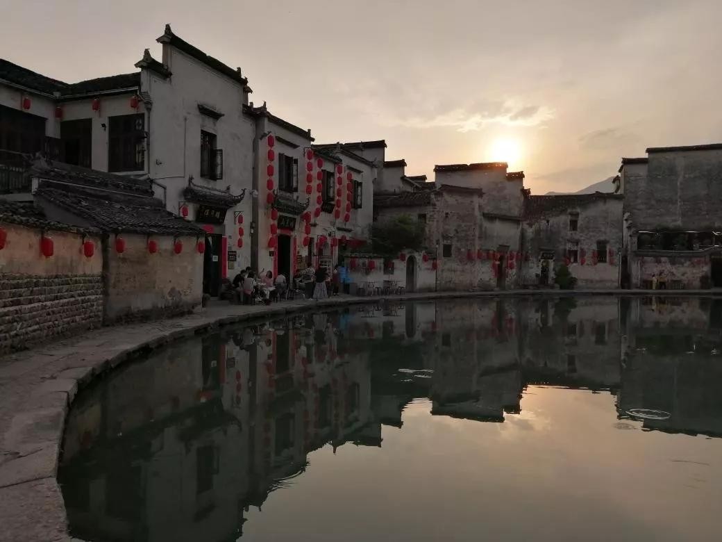 夕阳下的宏村丝毫没有影响到月沼的美,俨然就是一幅水墨画。