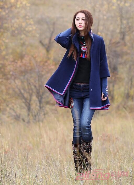 这款复古棉麻民族风中长款毛呢大衣,时尚的小立领设计,精美刺绣很吸睛,斗篷版型穿上身有型极了!