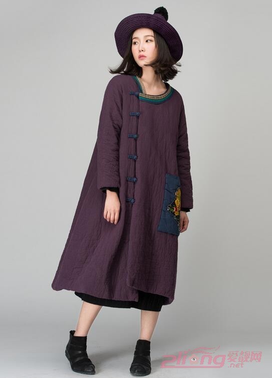 这款复古棉麻民族风中长款棉服,内里柔软的全棉保暖又舒适,复古文艺的斜襟很美观,印花口袋贴布也非常精美吸睛呢,宽松版型不挑身材哦。