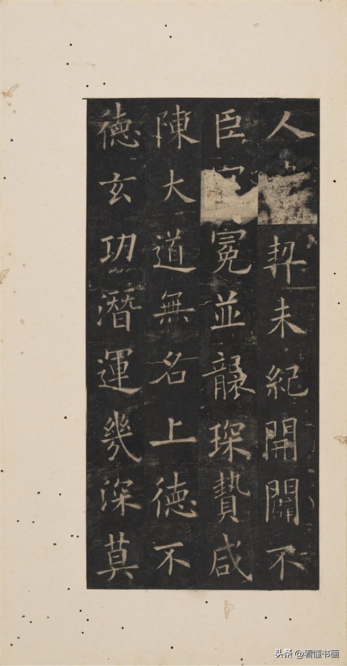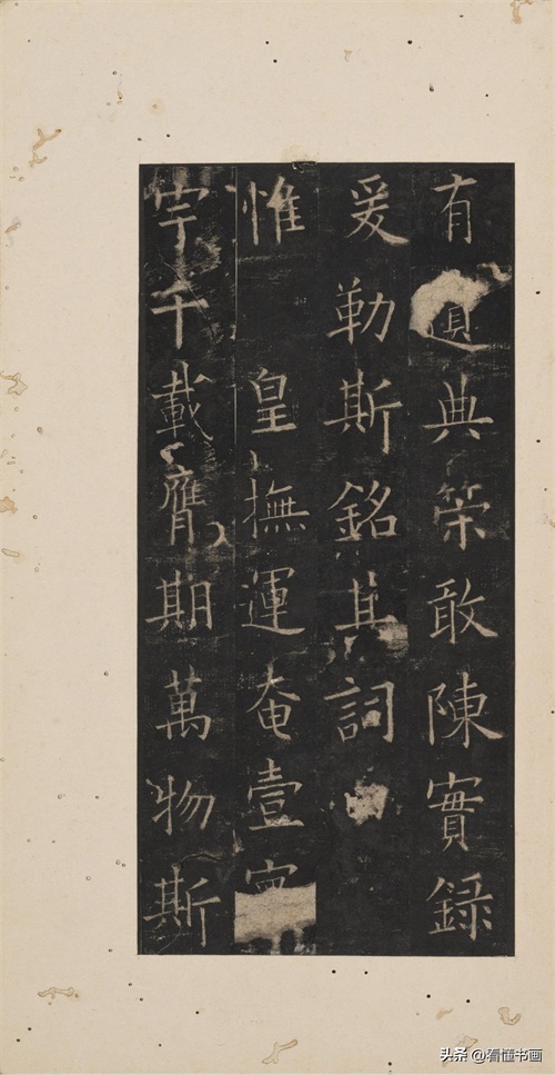 《九成宫醴泉铭》,或称《九成宫碑》,唐贞观六年(632年)立于九成宫内。碑高270厘米,上宽87厘米,下宽93厘米,厚27厘米。碑额刻有六龙缠绕及阳文篆书“九成宫醴泉铭”六字,每字约10厘米。碑有界格,格约3.5厘米(即古之谓“寸楷”),24行,行50字,1109字。