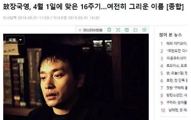 张国荣去世多年,但是在韩国的影响力流传至今,每一年的4月1日,韩国人都要进行纪念张国荣的活动,张国荣的名字每年都能登上韩国的热搜