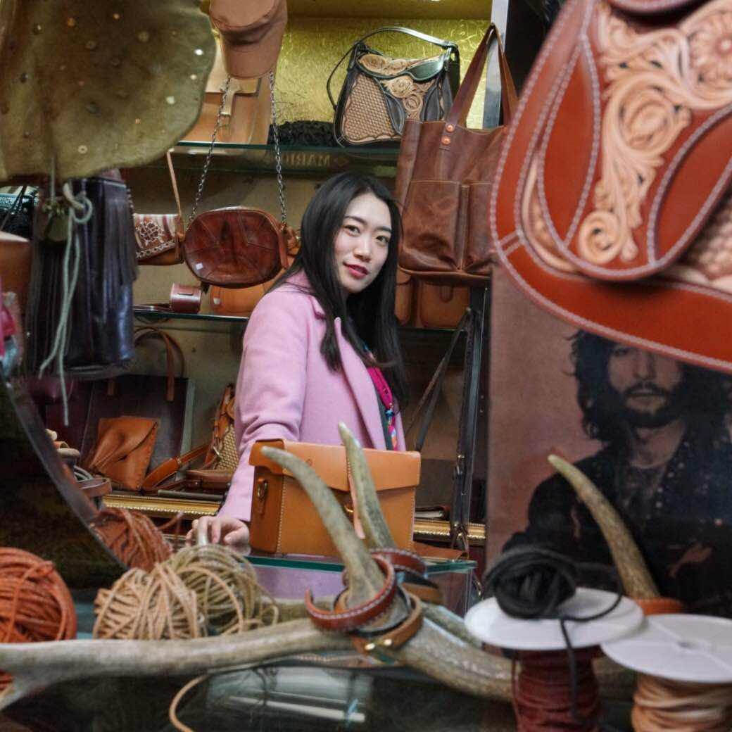 姑娘开一个皮具店,自己手工缝制精品,在潘家园还有分号。