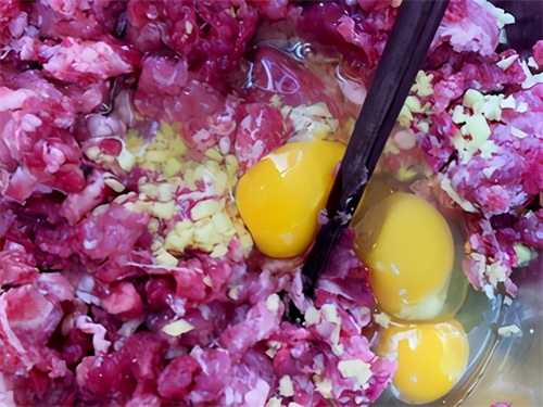 2.牛肉馅要按同一个方向搅拌,口感更劲道。