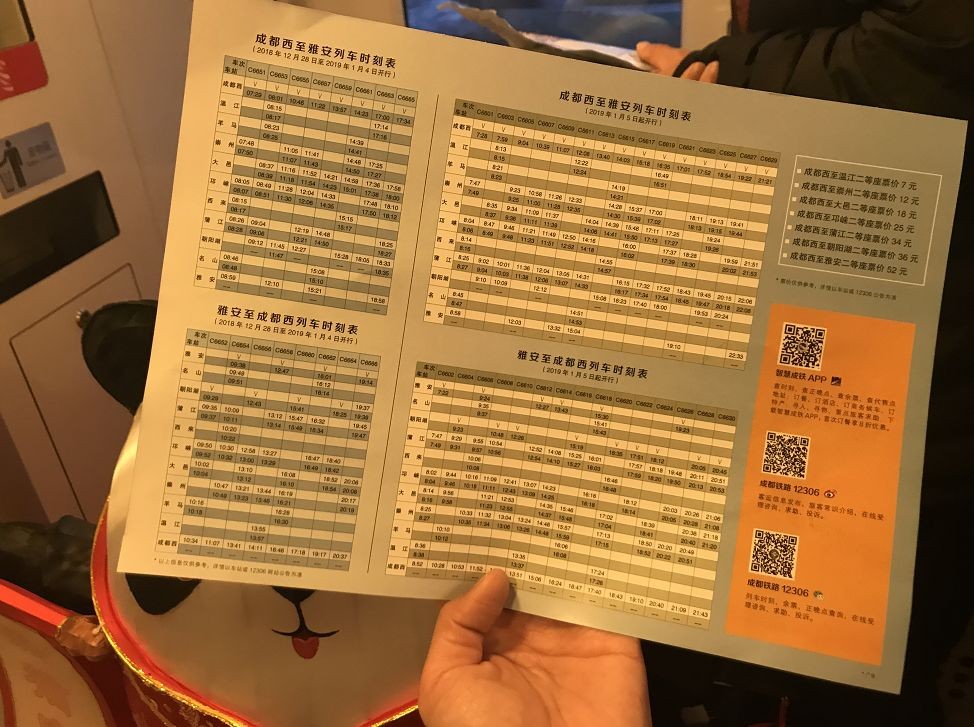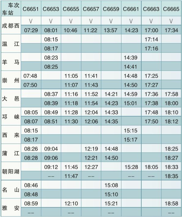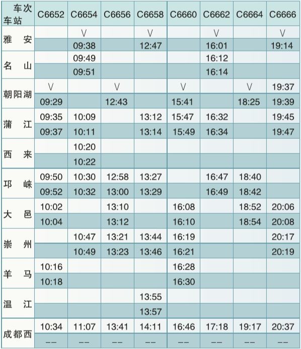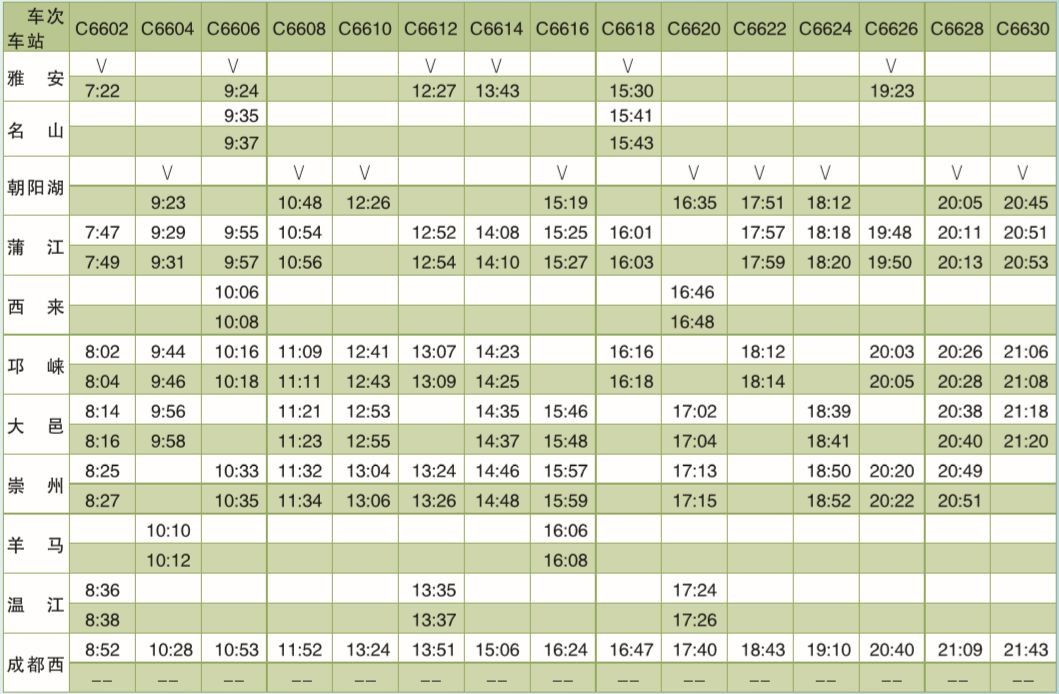中国铁路成都局集团有限公司表示,2019年元月5日零时起,按照中国铁路总公司的统一部署,全国铁路实施新的列车运行图,届时成雅铁路运输能力还将得到进一步提升。