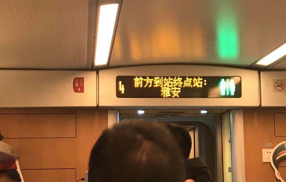 从成都西站1站台缓缓驶出,将于8:59抵达雅安站,