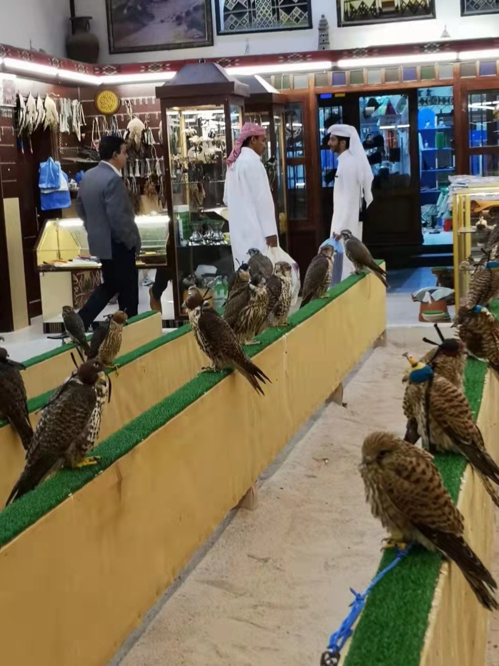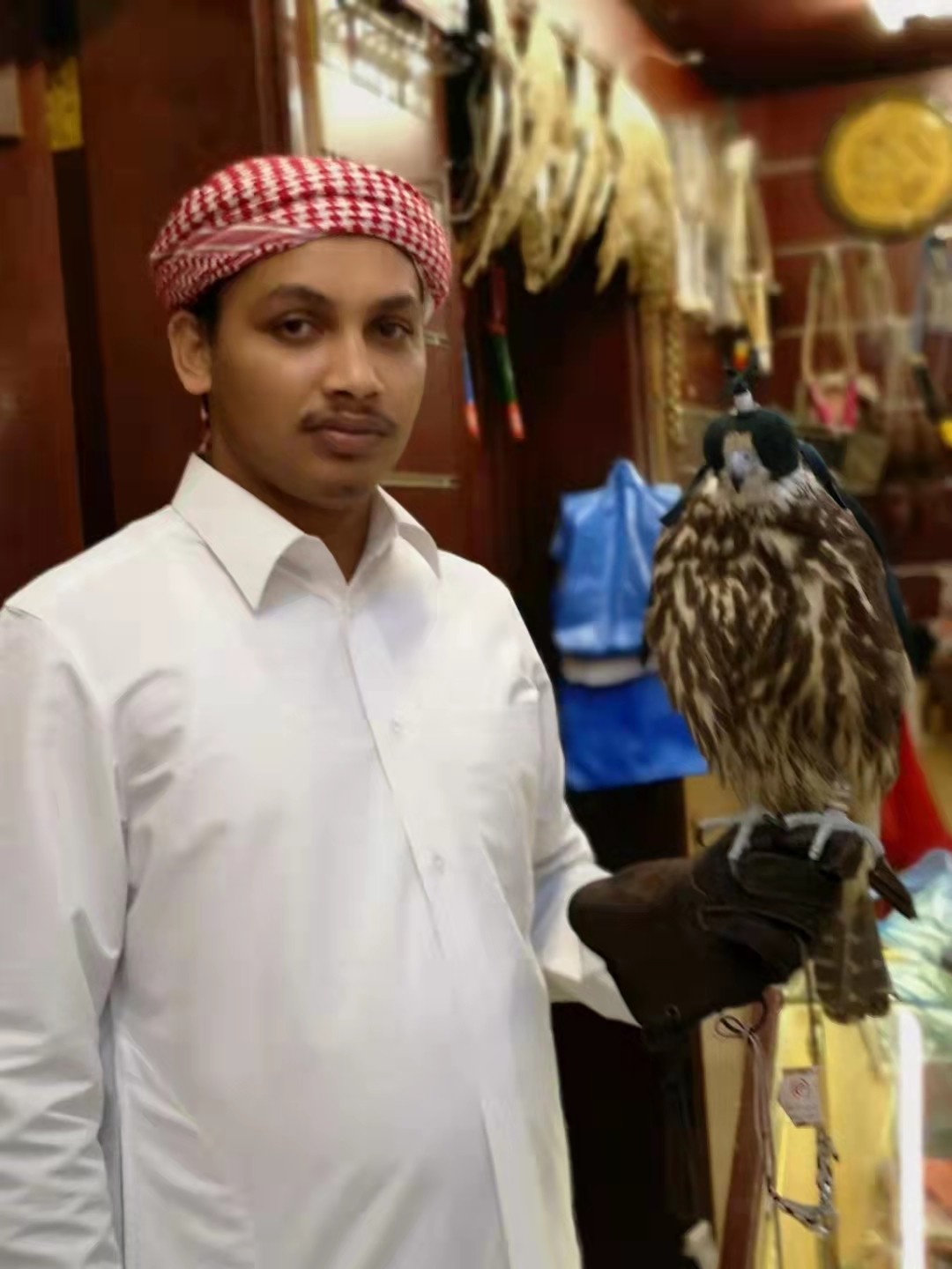 在阿拉伯半岛,驯养猎鹰的传统始于几千年前。卡塔尔首都多哈老市场里有鹰交易市场和专门给鹰看病的医院。鹰市场的鹰大多数带着眼罩,只露出喙。遮住眼睛让它们不能看见东西、目的是让鹰保持安静避免奋力的飞扑,碰到硬物伤到自己。市场一角还有专门制作眼罩的工匠。