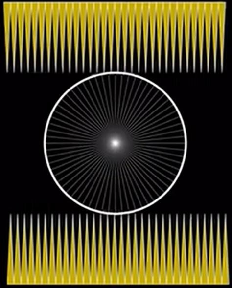 1)过圆心将圆无限切割成上下2块锯齿状图形